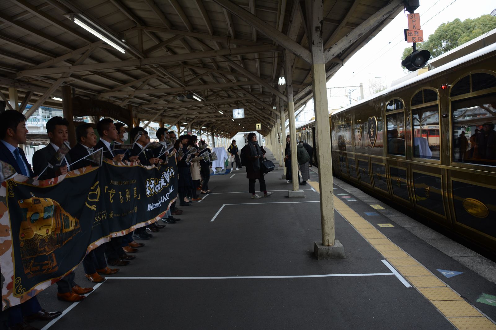 横断幕を広げたスタッフの人たちの歓迎を受けながらホームに降り立つと、優雅な旅の時間は終わり、雑踏の中で現実に引き戻されるように感じた。もう少し乗っていたいと後ろ髪を引かれる思いで駅を後にした。