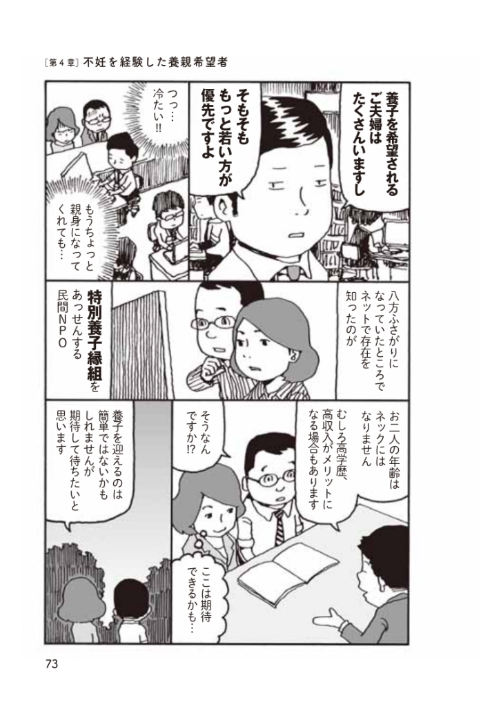 本書ではNPOとしてインターネット赤ちゃんポストを運営し、子どもの幸せを第一に考えた養子縁組を支援してきた著者が国の制度である特別養子縁組を解説。実親との親子関係を解消し、養親の元で新たな成育環境を獲得することができる特別養子縁組の有効性を、マンガと文章のミックスで検証していきます。