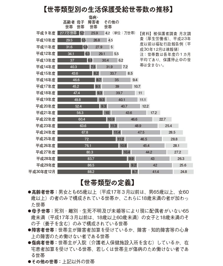 ちなみに、厚生労働省が今年3月に発表した資料(生活保護制度の概要等について)によると、実際にこの20年間で生活保護を受給する母子世帯はほぼ倍増しています。実数で約10万世帯の母子世帯が、実際に生活保護を受けている状況です。