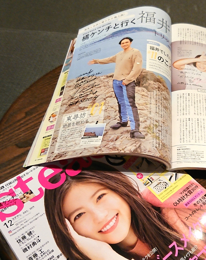 EXILE THE SECOND連載〈 セカ×ステ 〉を展開中の『 steady.』最新号において、橘ケンチが福井嶺北エリアを旅したブック・イン・ブック8ページに加えてオフショット1ページというフル・ボリュームの一大特集が掲載されます。橘ケンチがライフワークとする日本酒はもちろん在来種を誇る福井のそばを始め、ローカルフードやパワースポット、恐竜博物館などなど見どころを余すところなく収めています。食彩の秋にLDH kitchen IZAKAYA AOBADAI『越前福井フェア』とともにチェックしたいところだ。