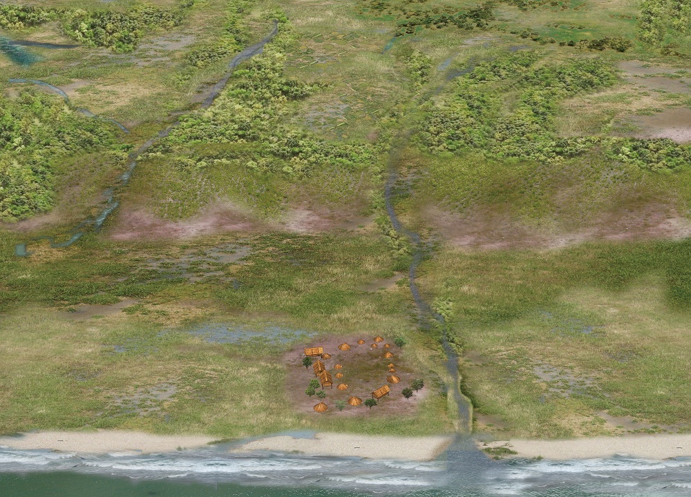濠の形状に合わせて粘土層や砂礫層の掘削を進める。掘削に使う道具は木製の本体に鉄製の先端部を付したもので、今のスコップと比べて機能的に劣る。しかしながら、当時はまさに鉄の時代、これとて最先端の技術を駆使した道具であった。