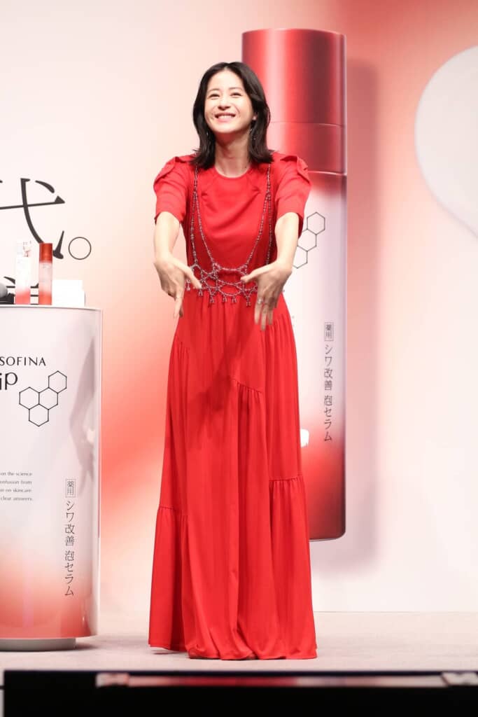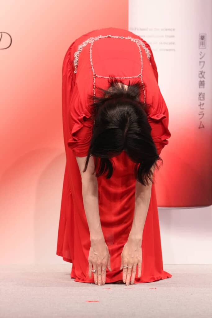 「見ていただいていいですか」と壇上で前屈を披露し、「聞いて下さい。ヒールを履いての前屈なので、きっと第二関節くらいまではいけたと思います」と会場を沸かせた。