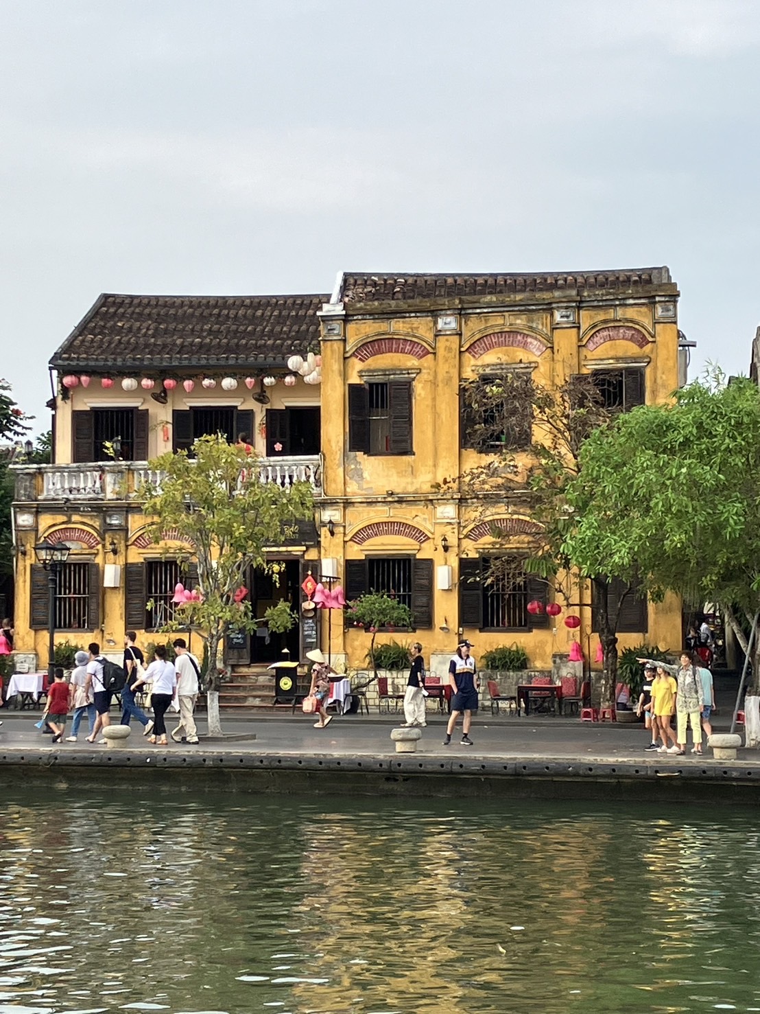 教え子が「是非行ってみてください」と言った景色はこれだったのか、私はしばらくその場から離れられることができませんでした。辺りを見渡すと川べりには、私と同じように立ち尽くす観光客や行き交う人で溢れています。その数はそれほど広くない旧市街地の許容量を越えているのではないかと思えるほどでした。私が訪ねた日は、人が多く集まる行事(ランタン祭り)もなく、さらに平日であるのにもかかわらず、アンホイ橋から人が零れ落ちそうなほどの、人また人です。あきれる程の人なのです。