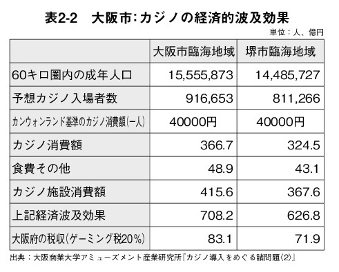 そしてこのIRは関西・大阪における巨大な投資を招き、雇用増大ばかりか大きな税収が産まれることで、福祉、医療、教育、観光、文化、芸術等への財源が確保できると言う。その一方でカジノによるギャンブル依存症や青少年への悪影響などの負の側面は「厳格な制度・規制・監視といった海外の対応策」の適用で防止可能であるし、IRの収益等で依存症対策が促進できるとされる。
