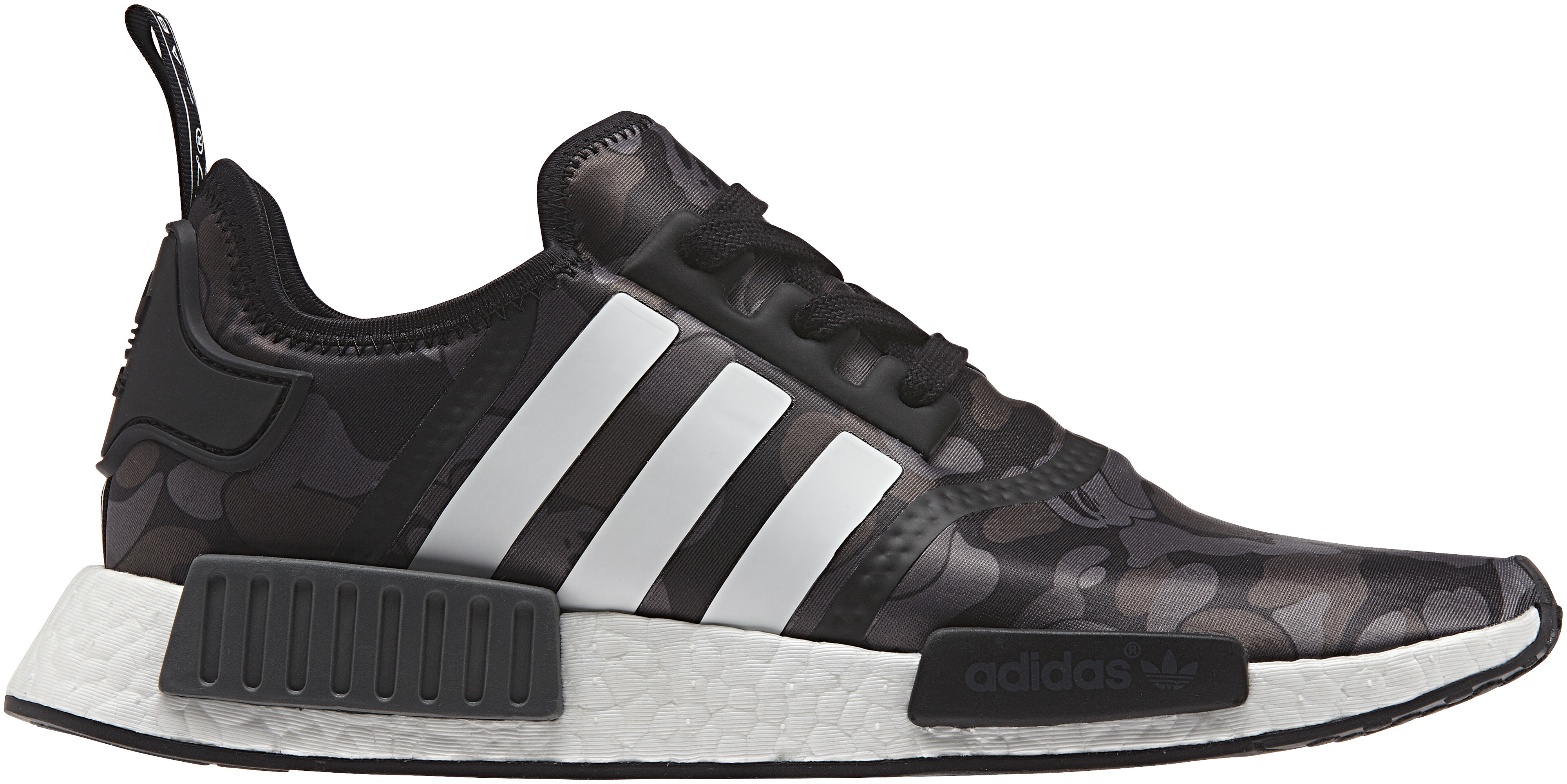 フットウェアからは、現在大きな人気と成功を収めているハイブリッドスニーカー〈NMD〉が登場。 2パターンのBAPE®オリジナルカモフラージュ柄によって、 進化し続ける両ブランドのアイデンティティがより強固に表現されている。