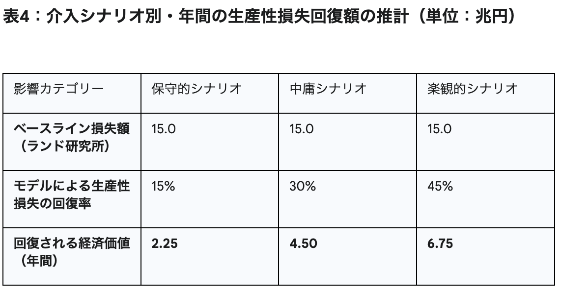 このシミュレーションは、単なる机上の空論ではない。総務省の人口統計、厚労省の医療費データ、ランド研究所の生産性損失モデル――あらゆる公的データを組み込み、R言語で構築された透明性の高いマイクロシミュレーションだ。