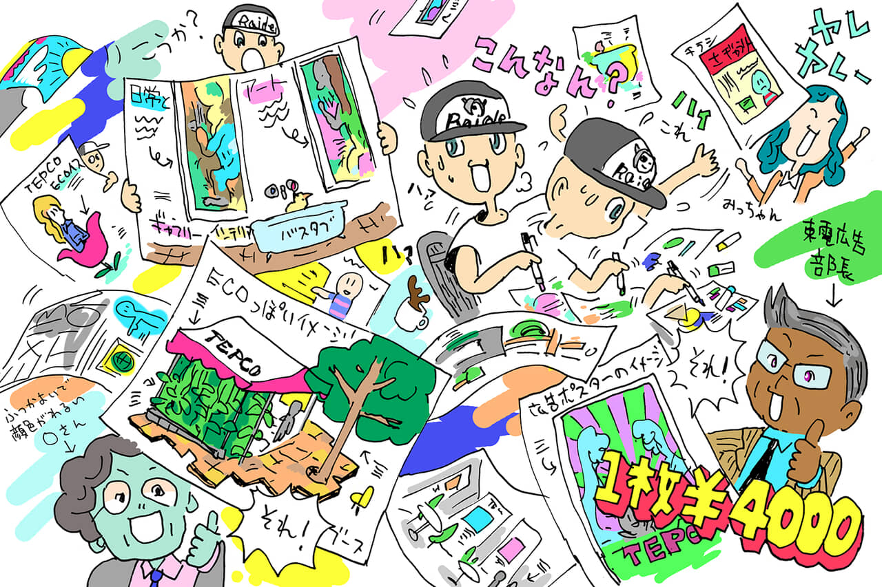 彼ら営業部は“制作営業”という広告やイベントのプロデューサー的役割を担う部署。親会社である東京電力の広告制作全般、ポスター新聞広告やテレビ・ラジオCMの媒体買い付け、自社媒体の販売など、通常の広告代理店としての機能のほか、東京電力が運営する銀座のアート・ギャラリー「プラスマイナスギャラリー」のキュレーション(美術展示の企画立案、作家のセレクトなど)や、渋谷の「電力館」ほか各地で開催される東京電力主催イベントのプロデュース(企画から会場のインテリア・設営・集客に至るまで)まで手広くやっていました。大規模キャンペーンになると外様の大手代理店も関わってきますが、東京電力の仕事を大小問わずよろず承る、いわば「実戦部隊」がこの東電広告。