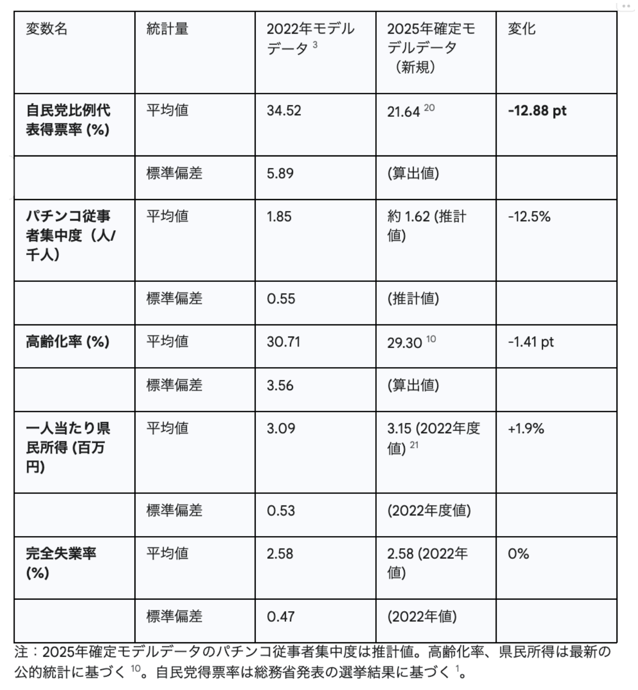 表1:主要な都道府県別変数の記述統計量の比較(2022年モデル vs. 2025年確定モデル)