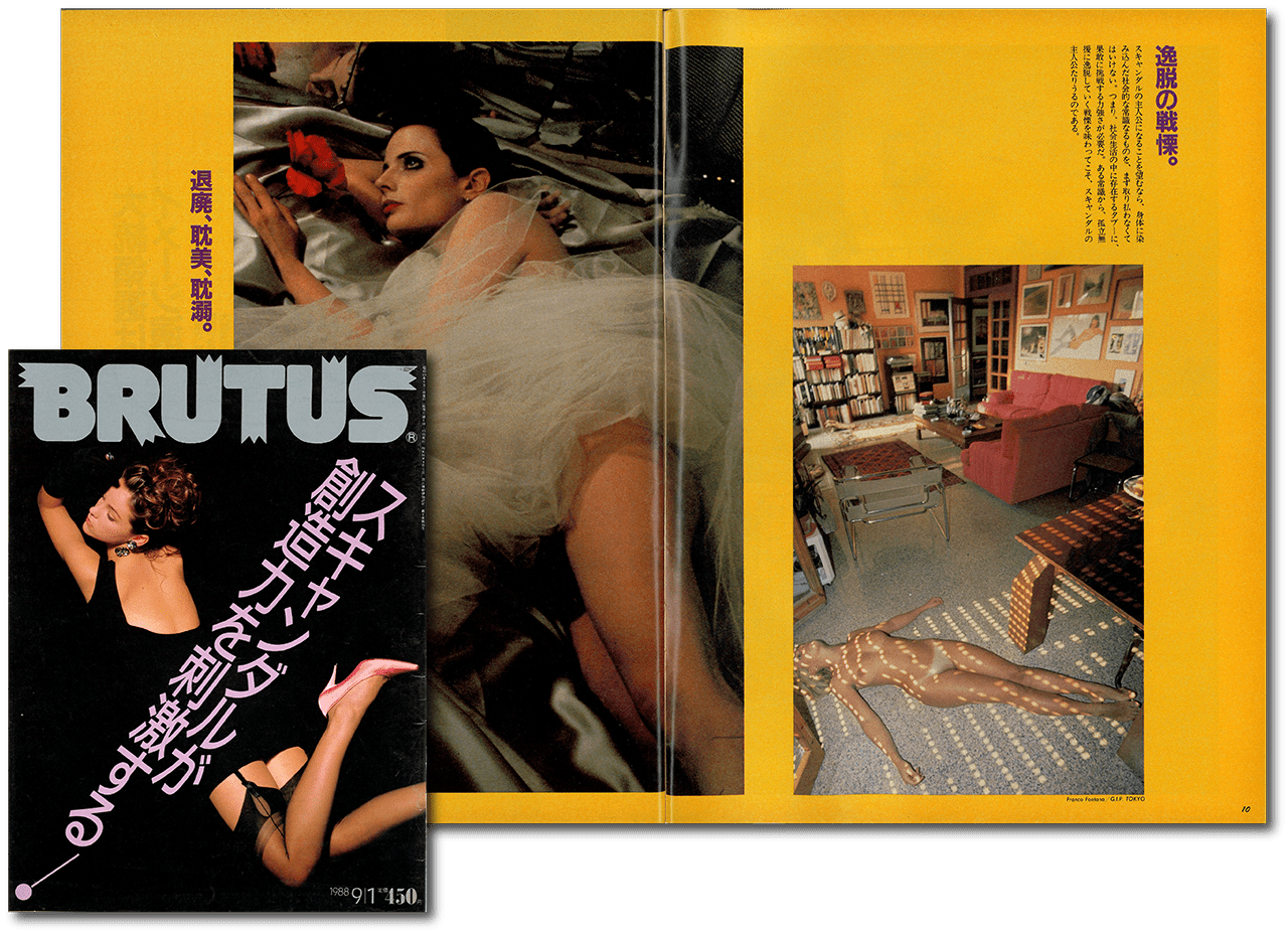 80年代の『BRUTUS』は、ゴージャスな海外取材ものが名物のひとつで、アフリカ特集の取材から帰国した某編集者が「象1頭600万円」と書いた領収書を提出、それが認められたという伝説が生まれたりもした(真偽は不明)。本や映画、音楽、アート、デザイン、ファッション、グルメの特集は当時からあるし、定番となった「居住空間学」特集もすでにあった。「裸の絶対温度」も話題を呼び、シリーズ化した(私ももちろん買った)。