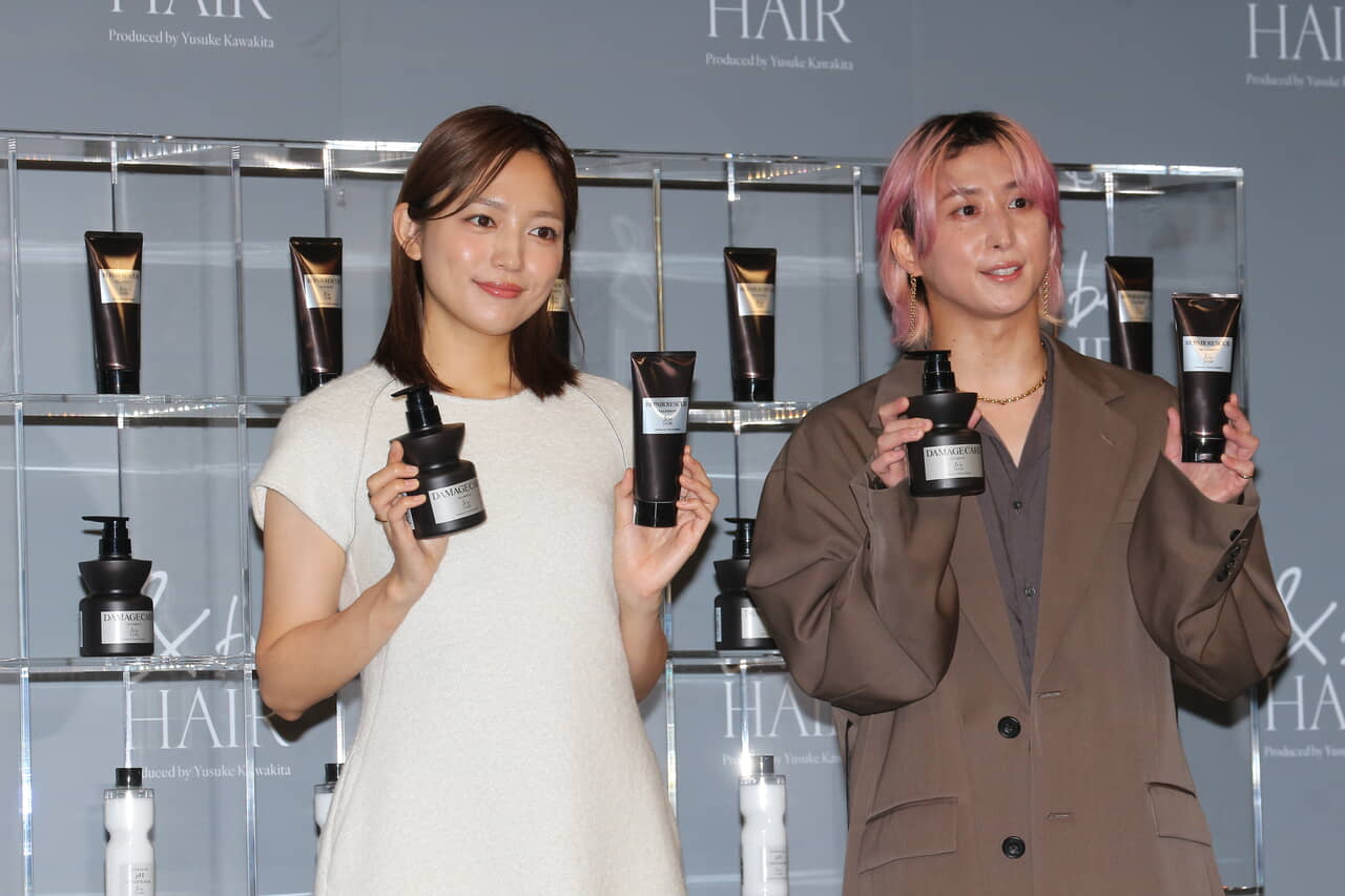 ヘアメイクアップアーティストの河北裕介がプロデュースするヘアケアブランド<&be HAIR(アンドビーヘア)>の新商品発売に合わせて、ブランドアンバサダーの佐久間大介(Snow Man)とブランドミューズの川口春奈らが出席する、発表会が行われた。