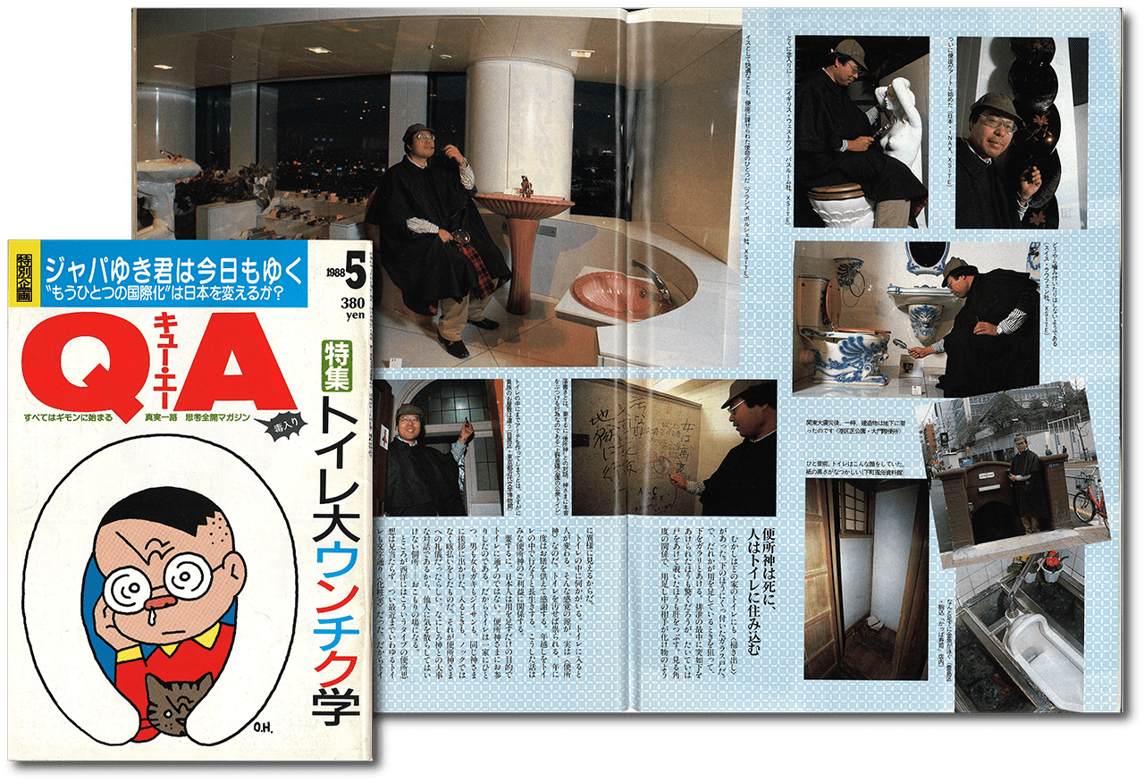 TOTOとINAXの社員にトイレライフについて聞いた「直撃トイレ・アンケート」では、〈1日に何回ウンチをしますか?〉〈ウンチ1回の所要時間は?〉〈ウンチの前に、オナラをしますか?〉〈合計何回拭きますか?〉〈男性にうかがいます。洋式トイレのとき、ポコチンはどうやって押さえますか?〉といった遠慮会釈ない質問が乱れ飛ぶ。