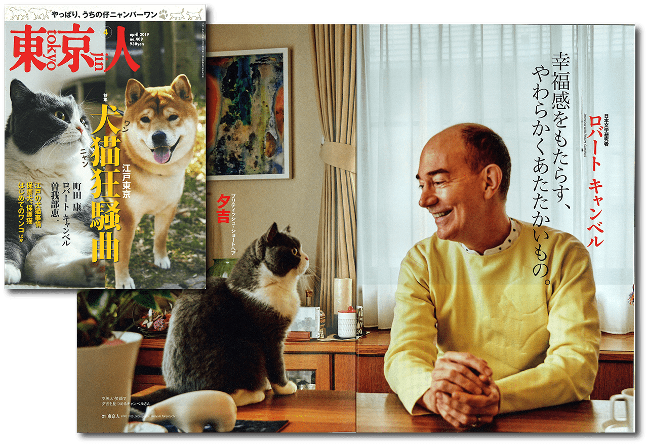 町田康、ロバート・キャンベル、曽我部恵一らが、愛猫・愛犬との暮らしを語る。浅草演芸ホールの看板猫、猫本専門書店「キャッツ ミャウ ブックス」の猫店員らの仕事ぶりを紹介するほか、犬猫保護団体代表や犬猫専門誌編集長も登場。さらには「犬バカ」を自任する当時の『東京人』編集長自らが誌面を飾る。ペットフードやペット保険、ペットの納骨堂ガイドなど実用情報もあれば、「江戸の猫は恋だらけ」「犬、江戸を生きぬく」といった歴史記事もある。ややムリヤリ感もあるが、ここで「江戸東京」と絡めてきたわけだ。