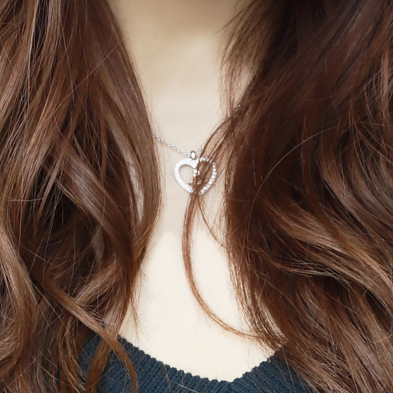 写真を拡大 「ピンク色のブレスレットと同じ〈ヴィヴィアン・ウエストウッド〉で合わせたネックレス。大きめのハートがアクセントでお気に入り♡」