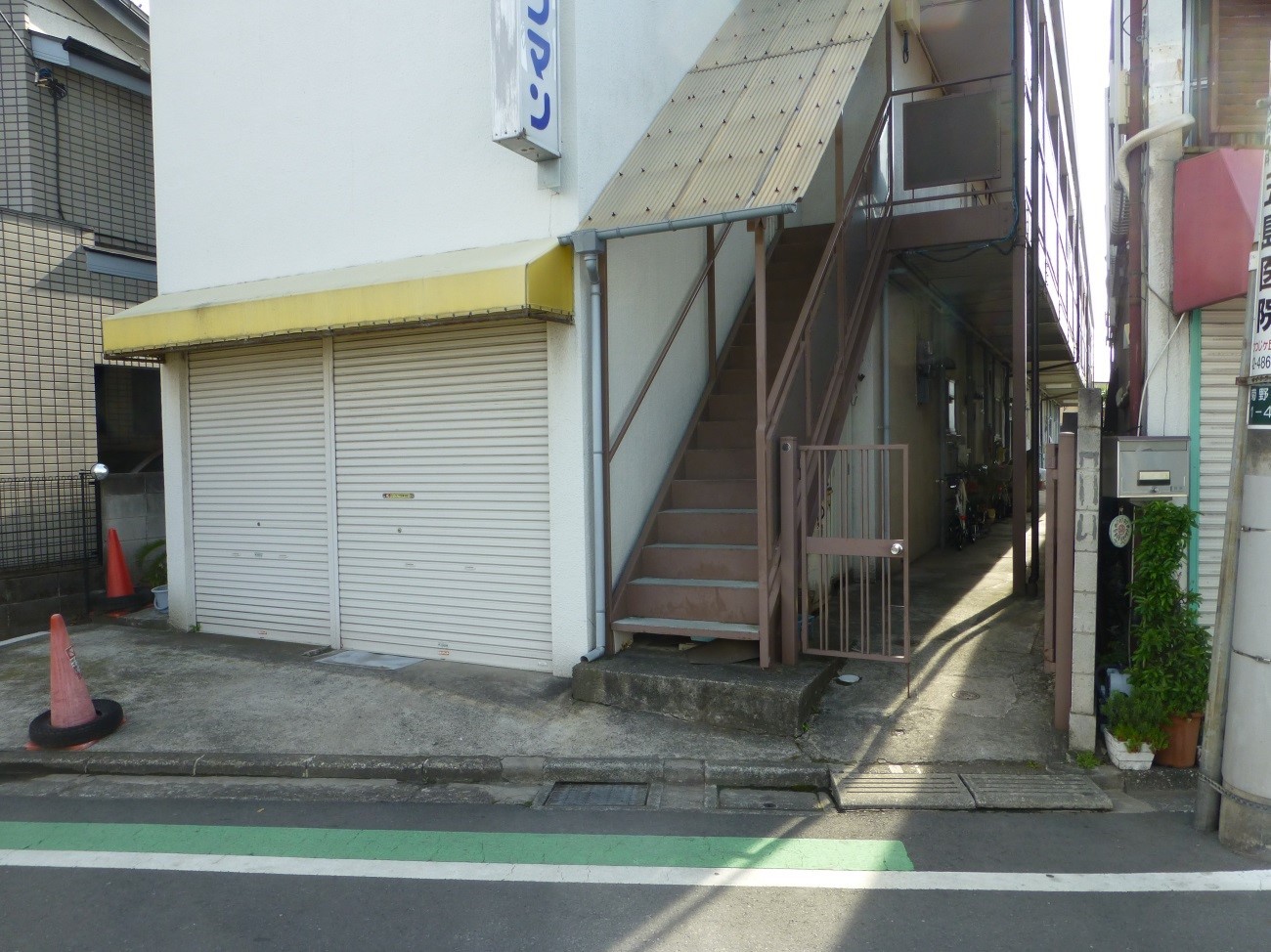 写真を拡大 旧柴崎停留場の跡地に建つアパート。ここだけ他の家並みと建物の角度が異なるので、三角形の空き地が印象的。