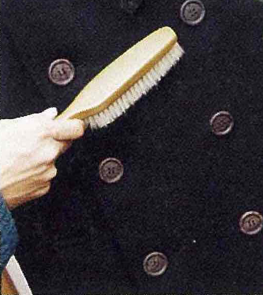お手入れの基本であるブラッシングは、メルトンでも重要なケア方法。特に虫喰いが起こりやすいウールのメルトン地は、しっかりとしたブラッシングを。