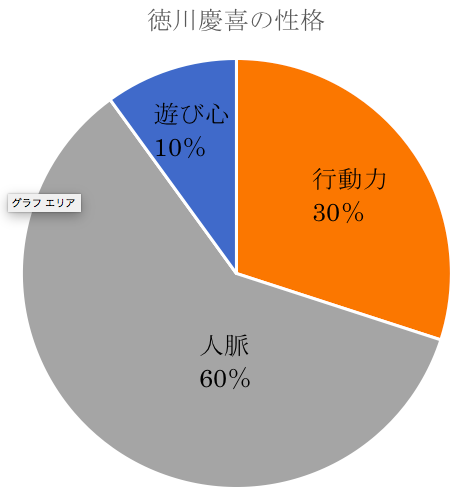 続いて、通変星、蔵干通変星から慶喜の性格を読み解いていく。通変星、蔵干通変星をわかりやすく円グラフに表すと下記のようになる。