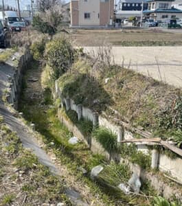 小牧山城跡から南西へ4キロ弱、小木に残る惣堀(外堀)の痕跡。当時は幅も広く土居(土塁)とセットで、少し後の小牧・長久手合戦の際に虎口なども造られ強化されたようですが、今はその頃を忍ぶ術もありません。