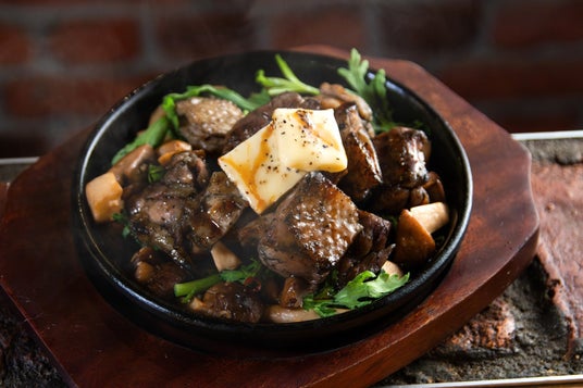 とかちマッシュをメインに旬のきのこを醤油ベースの特製ダレでソテーし、炭火で豪快に焼き上げた新得地鶏とあわせています。