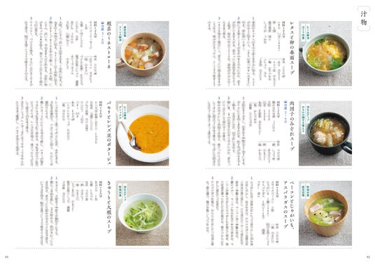 今ある不調や効能から選べるよう、アイコンがついています。便秘改善、むくみ解消、乾燥対策など体の体調に合わせて必要なものを選んだり、乾燥する秋冬など季節ごとの不調や予防で選ぶのも。品数が少なくても食事のトータルケアができる工夫がされているので、時間に余裕がないときは2品献立でも3品献立でもOK。一汁三菜献立は時間がとれるときやしっかり食べたいときにおすすめです。