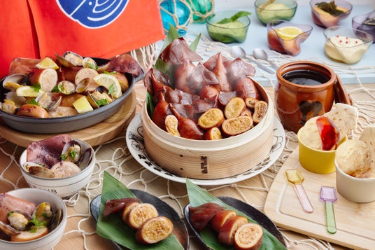 OMOカフェ&バルでは、いかめしのご飯と甘辛いたれの味わいを再現してスイーツにした「いかめしアイス」を提供します。OMO5函館のご近所さんである、ホームメイドアイスクリーム&シャーベット専門店「冨士冷菓(*3)」と共同開発しました。仕上げにはたれをかけ、イカの形の米煎餅をトッピング。源泉掛け流し温泉「琥珀色の湯」の湯上がりにさっぱりと食べられ、見た目もテンションあがる新感覚スイーツです。