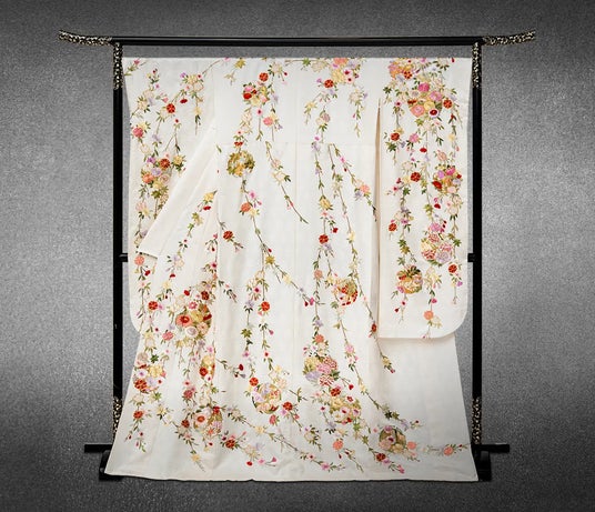 三大刺繍をはじめ、刺子や金駒刺繍など、熟練した職人の精緻な手仕事は、まるで絵画のような華麗さ