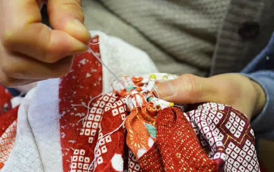 一つひとつ糸でくくるため非常に手間と時間がかかり、そのため大変高価な技法でもあります。
