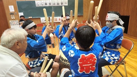 現在、太鼓を叩く子どもたちは、祭り本番に向け地元の消防団員などの指導のもと公民館や神社で練習の真っ最中。練習場には熱気が溢れ、「サー、サー、ヨイショー、ヨイショー」という子どもたちの元気な掛け声が響き渡っています