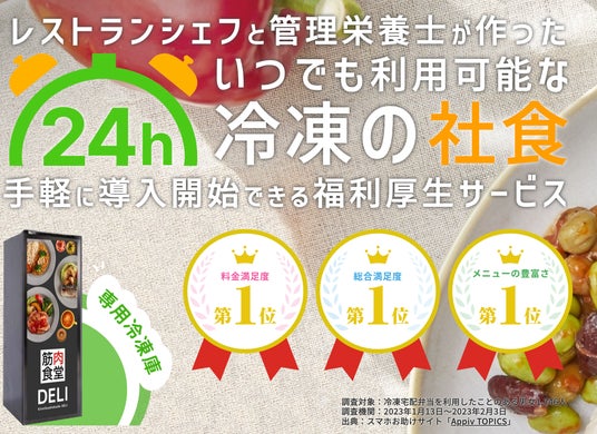 また、冷凍宅配弁当『筋肉食堂DELI』は、自宅にいながら栄養バランスの取れた食事を続けられる仕組みを提供しており、 法人向けサービス『筋肉食堂Office』は、オフィスワーカーの健康的な食習慣を支えています。