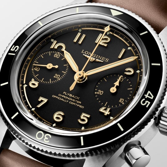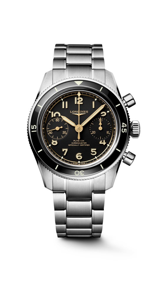 1930年代に『ロンジン』が開発した複雑機構クロノグラフの「フライバック機能」搭載の新作「スピリット パイロット フライバック」は、手巻きムーブメントを採用。ケース径39.5mmで厚さ13.4mmを実現し、より高度なデイリーウォッチへと進化しました。「ロンジン スピリット パイロット フライバック」、「ロンジン スピリット パイロット」は、人気コレクション「ロンジン スピリット」の特徴的な美しさを進化させ、本質を体現したデザイン性、洗練されたツールウォッチとしての機能性により、レトロで研ぎ澄まされたパイロットウォッチを所有する意味を唯一無二にします。