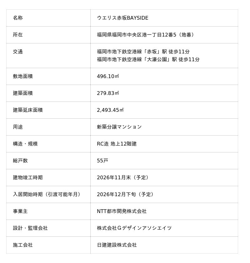 NTT都市開発株式会社(本社:東京都千代田区、代表取締役社⾧ 池田 康)は、新築分譲マンション「ウエリス赤坂BAYSIDE」(福岡市中央区)について、2025 年10月4日(土)よりマンションギャラリーをグランドオープンすることをお知らせします。