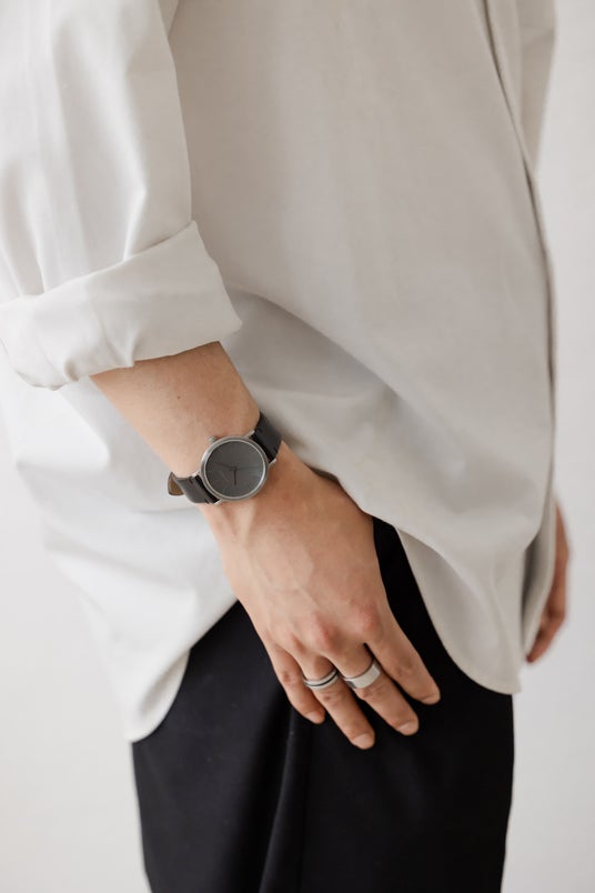ダイヤルやステッチだけでなく、ケースや尾錠など金属部分の色味まで揃え、まるでブレスレットの ような一体感を実現。