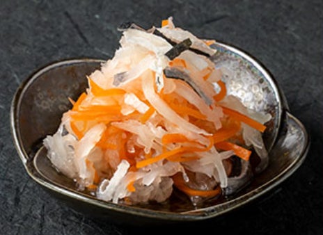 上品な味わいの「紅白なます河豚皮添え」フグの皮が入っており高級感あふれる一品。武士は「美味しいしさっぱりしている」「甘さの加減もすごくいい」とその上品な味を、絶賛しています。