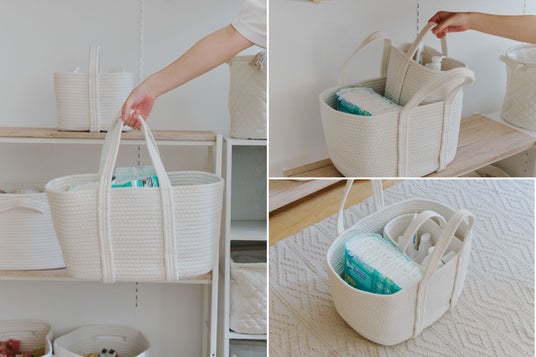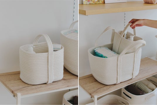 保湿剤、綿棒、体温計、おしりふきなど赤ちゃんのお世話セットをまとめて収納できます。