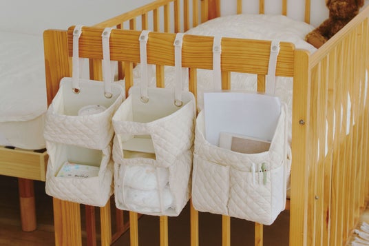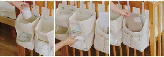 ベビーベッドにかけて使用できるループ付きで、おしりふきやおむつ、