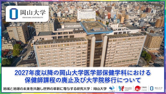 国立大学法人岡山大学(本部:岡山市北区、学長:那須保友)は、社会の多様な保健医療ニーズの変化を踏まえ、2027年度入学生より医学部保健学科看護学専攻における保健師課程を廃止し、保健師養成を大学院保健学研究科へ移行します。