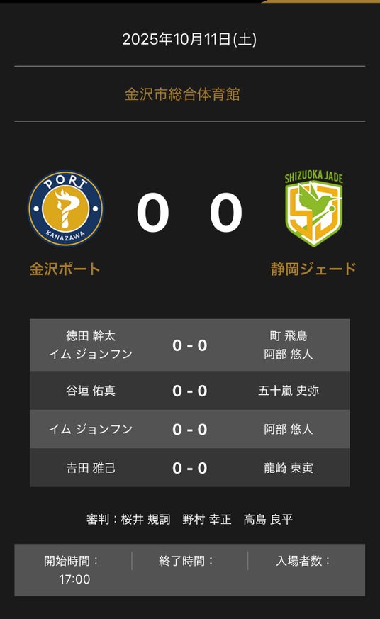 ノジマTリーグ 2025-2026 公式戦 10月11日開催 金沢ポート vs 静岡ジェード 対戦オーダー発表