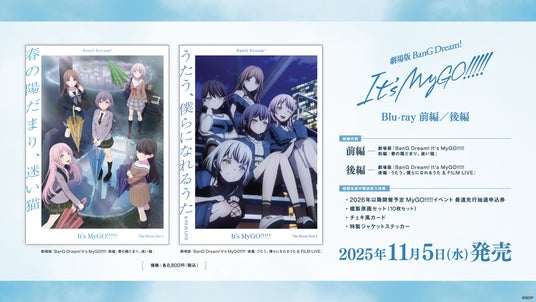 2024年初秋に公開された、劇場版「BanG Dream! It's MyGO!!!!! 前編 : 春の陽だまり、迷い猫」、劇場版「BanG Dream! It's MyGO!!!!! 後編 : うたう、僕らになれるうた & FILM LIVE」のBlu-rayが11月5日(水)に発売されます。