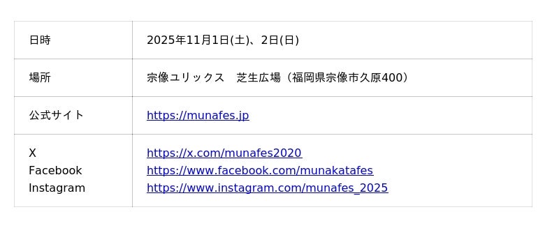 【宗像フェス2025】11月1日、2日のタイムテーブル発表!見逃さないように要チェック☆