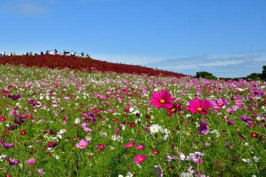 国営ひたち海浜公園の「みはらしの丘」では、約236万本のコスモスが14日に見頃(7分咲き)を迎えます。丘を縁取るように一斉に花を咲かせ、風に揺らぐ姿はまさに秋の風物詩。見頃は27日頃まで続く見込みで、丘のふもとを彩る赤・白・ピンクのコスモスと、まもなく紅葉を迎えるコキアとのコラボレーションをお楽しみいただけます。