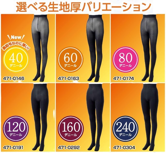 40・60・80・120・160・240デニールと豊富なバリエーションを備え、今年は、シリーズ最薄の裏起毛タイツ・レギンスとして「40デニール」が新登場します。