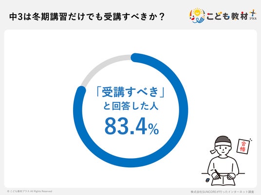 - 普段塾に通っていない中3生も、83.4%が「冬期講習だけでも受講すべき」と回答