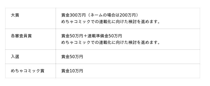 ※完成原稿とネームで賞金額は異なります。