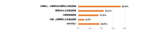 - 望む次期政権「自民+公明以外の連立」36%「野党連立」22%「自民単独」17% -