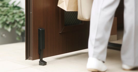「家族がドアストッパーを使う時、固定は足で簡単にできるけれど、解除するのが大変そう」という社長の気づきから開発を開始。荷物で両手がふさがっている、宅配の受け取り、ベビーカーを玄関に入れる等「今だけ開けておきたい」、そんなときに簡単に操作できるドアストッパーを目指ししました。