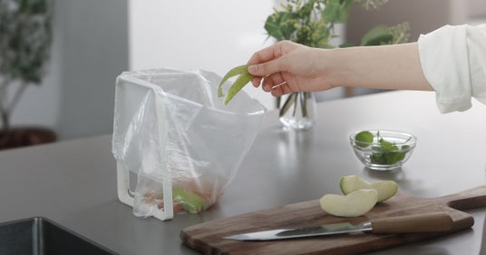 ポリ袋ホルダーは、従来の生ごみ入れが抱えてきた「場所をとる」「手入れが面倒」といった課題を解消し、暮らしに取り入れやすい新しい形を示している。袋口が手前に大きく開くV字形状は、ごみを捨てやすく、満量時にも袋をすっと外せる快適さがある。折りたためば約3cmと薄く、狭いキッチンにも馴染む。滑り止めを一体成型にした清潔な仕様や、袋を閉じて臭いや虫を防げる工夫も秀逸である。さらに調理中の材料の一時置きや袋調理にも活用でき、日常の調理環境をより快適に支える存在として評価できる。