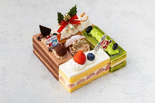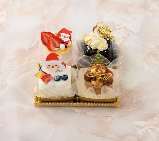 西武福井店では10 月17日(金)から12月17日(水)の期間、クリスマスケーキの受注予約を行います。昨年は平日 クリスマスや物価高の影響で、小分けできるケーキや小さいサイズのケーキがそごう・西武全店のランキング上位にあがるなど人気でした。今年も平日クリスマスであることに加え、続く物価高で節約志向の意識が高まっていることを受けて、 いろいろな種類を楽しめるアソートケーキを拡充して展開いたします。一方でクリスマスケーキも二極化しており、節約ムード 高まる中でも、年末年始は贅沢をしたいという声にも対応し、フルーツをたっぷり使ったケーキや有名パティシエのケーキなど、クリスマスを華やかに彩るケーキを展開いたします。 地元人気パティシエたちによる、こだわりあふれる贅沢なオリジナルアソートケーキもご紹介。4人のパティシエたちのスイーツを一度に味わえる