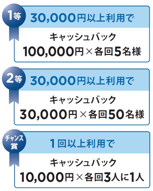 - - チャンス賞:1万円キャッシュバック(各回3人に1人)