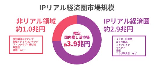 推し活市場全体は約3.9兆円/年と推定、そのうち「IPリアル経済圏」は約2.9兆円/年と算出