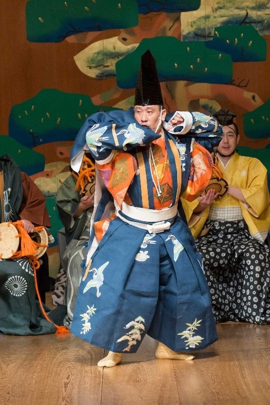 「翁」と共に「式三番」を構成する、能でも狂言でもない特殊な種目。囃子の異例の編成、リズム型による老体の神の祝言、祝舞で、上演自体が祭として神聖視され、舞うことを《踏む》というほど足拍子が多用される。さらに「千歳ノ舞」を加え、祝祭の開幕をより豪華に彩る。