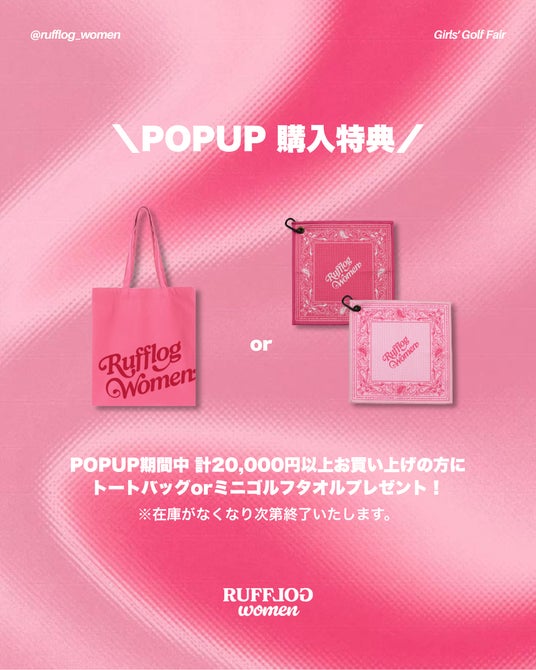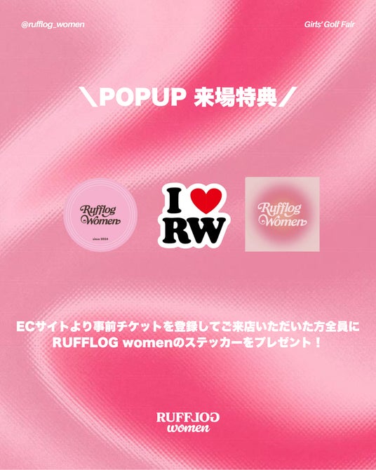 株式会社RUFFLOG(本社:東京都目黒区、代表取締役社長:竹林史貴、以下RUFFLOG)は、10月17日から3日間限定で、日米韓の人気レディースゴルフウェアブランド9社による合同ポップアップイベント『Girls' Golf Fair by RUFFLOG Women』を開催することをお知らせ致します。